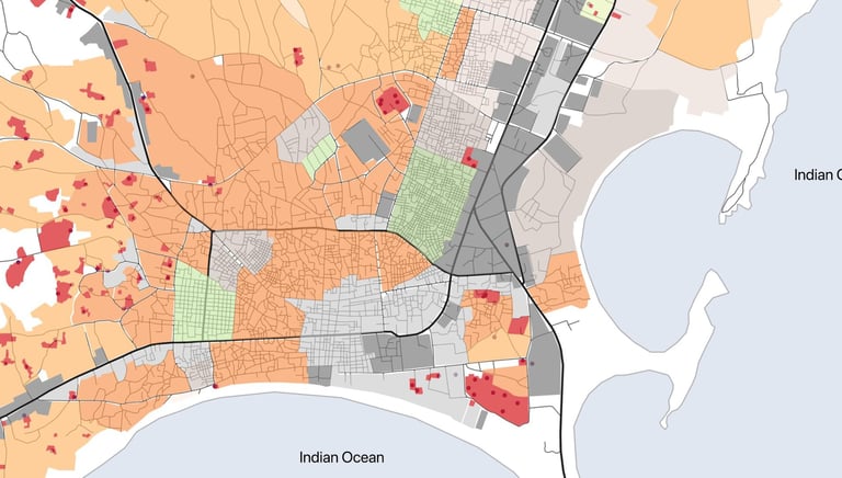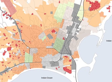 Employing GIS, remotely-sensed high-resolution satellite imagery and spatial and demographic data modelling for effective land use and infrastructure planning solutions at the urban and regional scale. Our approach provides data-driven insights drawing on state-of-the-art, urban science-informed methods for spatial data collection and analysis, including extensive and inclusive stakeholder engagement including household surveys, key informant interviews and focus group discussions.